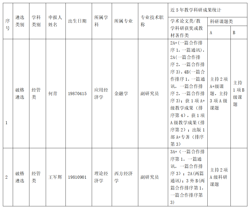 经济与管理研究院2025年新增博士研究生导师初审推荐名单