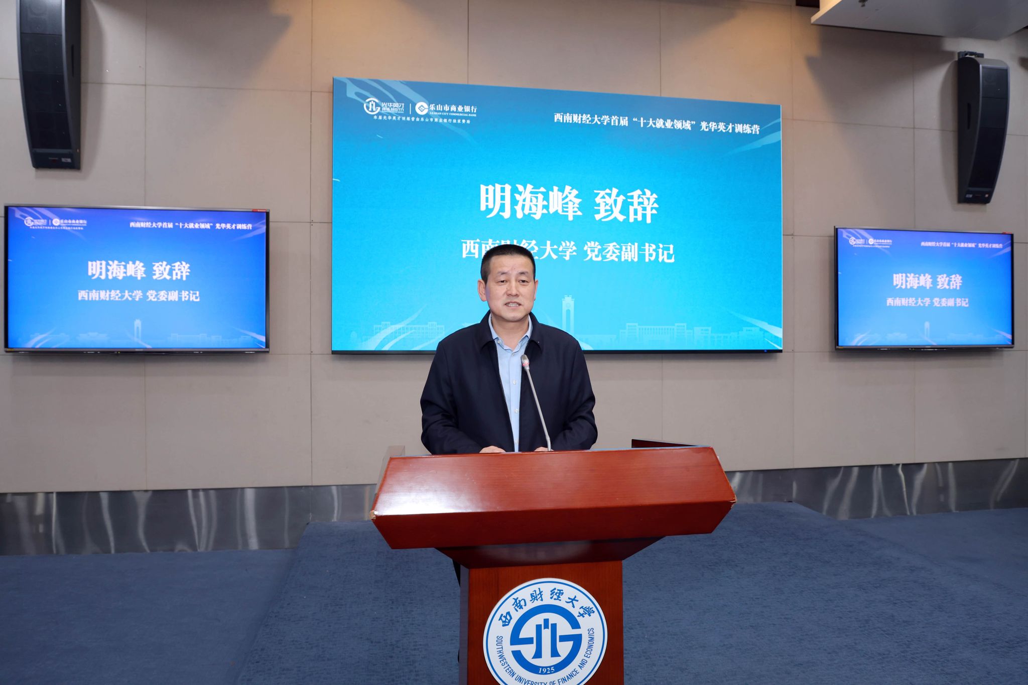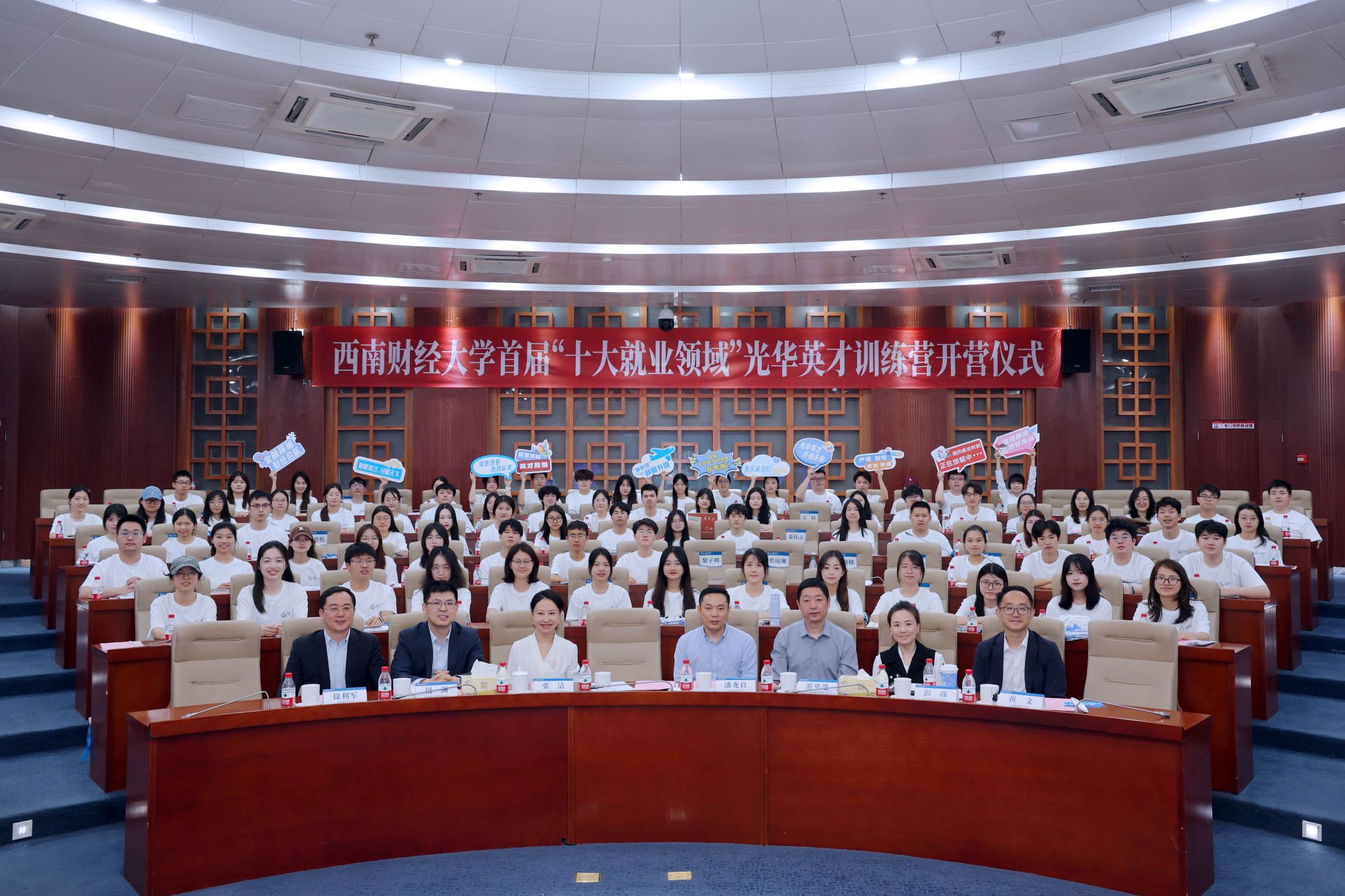 4月11日下午,由金融城资本(成都交子公园投资控股有限公司)参与支持的首届“十大就业领域”光华英才训练营开营仪式于西南财经大学柳林校区弘远楼101会议室盛大启幕。该活动旨在深化校企协同育人,赋能学生职业发展,为国家金融领域培养更多优秀人才。西南财经大学党委副书记明海峰、乐山市商业银行党委委员兼行长助理潘龙良等嘉宾出席活动并致辞,中国平安人寿保险股份有限公司四川分公司、中信证券四川分公司、南方基金成都分公司等企业负责人及百名营员齐聚一堂,开启职业赋能新征程。