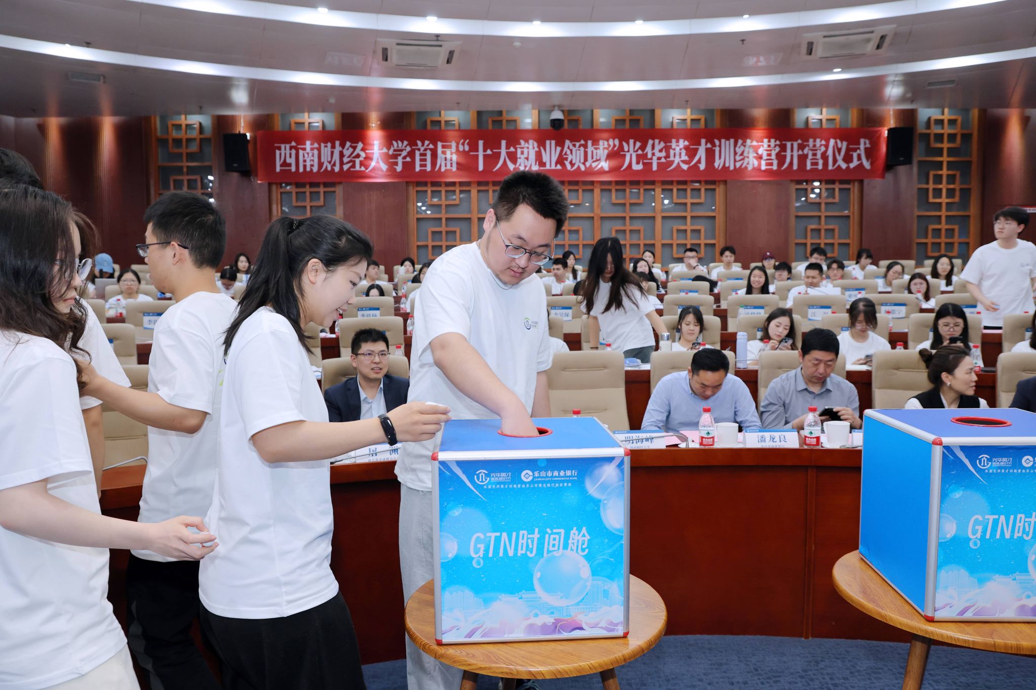 营员代表黄瑞号召全体营员传承西财精神,在训练营中突破自我,以青春之力书写金融新篇章。此外,开营仪式还特别设计了“时间胶囊”环节,营员们写下对未来职业发展的期许并封存,待结营时启封见证成长。这一环节不仅增强了营员的使命感,也体现了金融城资本对人才培养的长期关注。